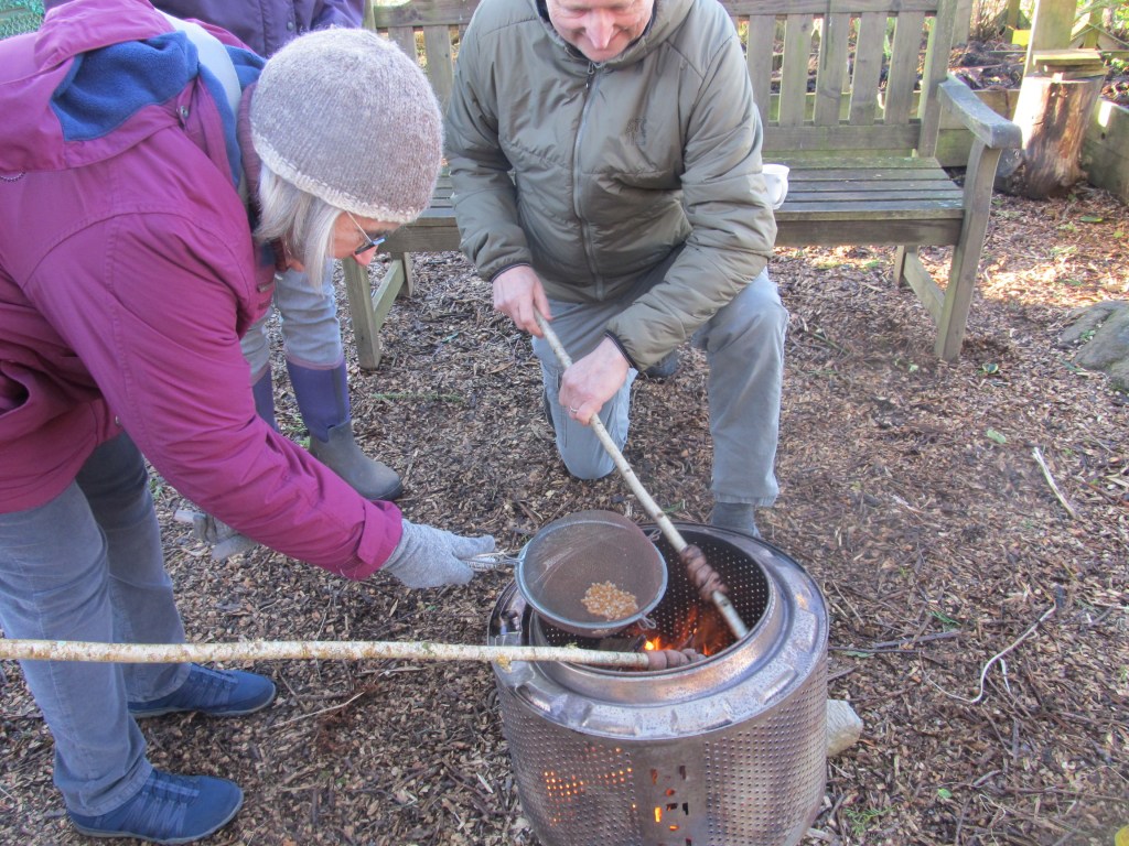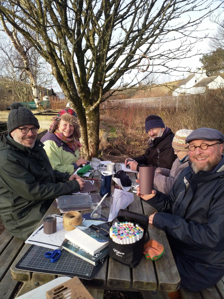 For anyone who struggles with grey skies and long hours of darkness, it’s important to get outside into the daylight whenever possible. Our events provided a reason to venture outdoors and gather around the firepit for hot drinks, cake, companionship and creativity!